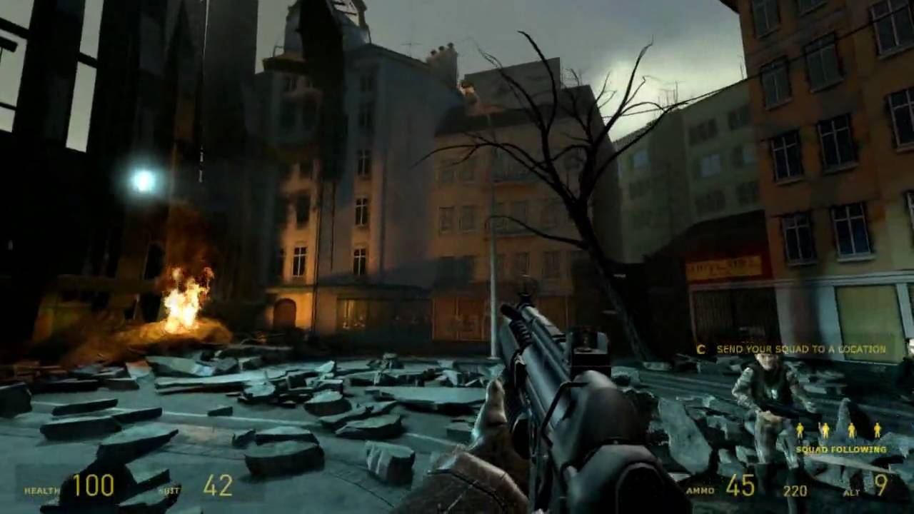 Compared to most first-person shooters of the time, which relied on cut-scene intermissions to detail their plotlines, Half-Life's story is told mostly using scripted sequences (bar one short cutscene), keeping the player in control of the first-person viewpoint.